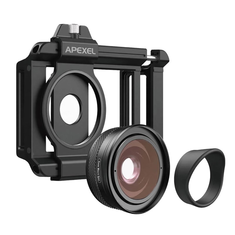 Apexel APL‑ZM100 ZoomMacro (10–20×) — професійний макрооб’єктив для смартфонів із потужним оптичним збільшенням 10–20×, широкою діафрагмою F1.05 і трьома скляними елементами у трьох групах для чітких, деталізованих знімків з фокусною відстанню 15–45 мм