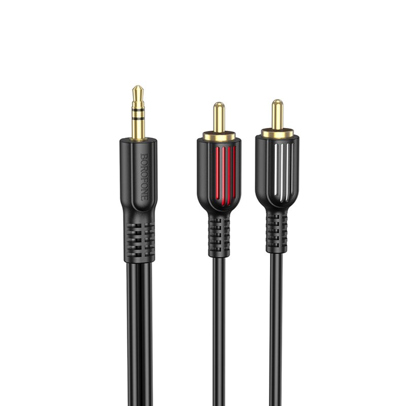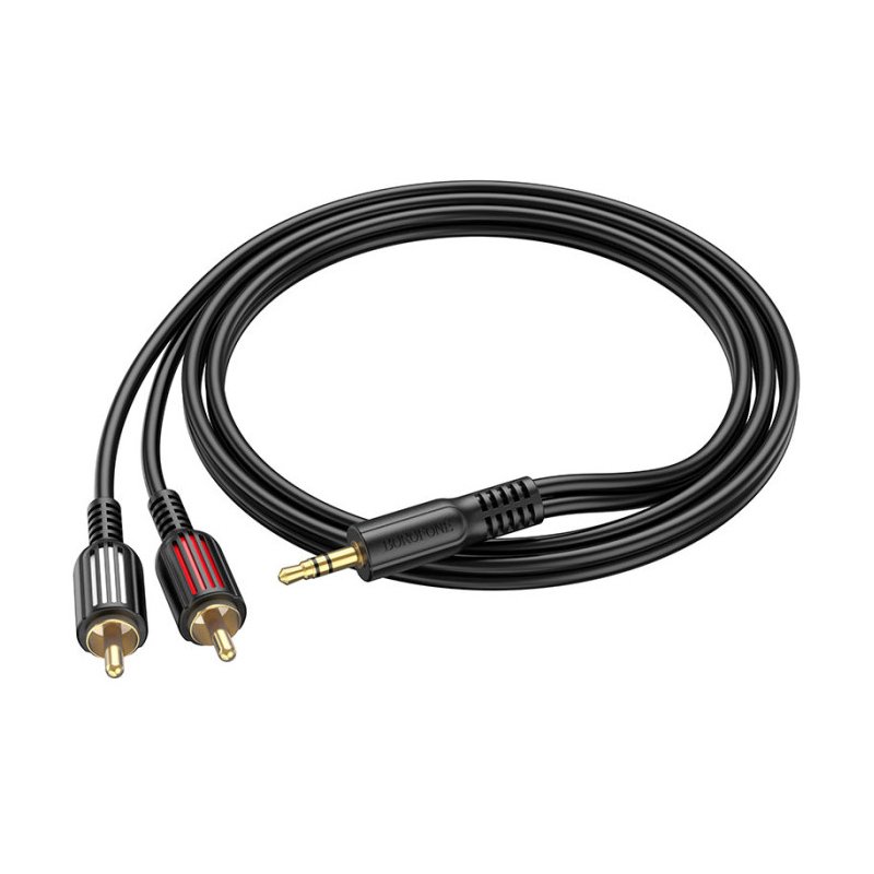 BOROFONE BL11 — якісний звук без втрат: зображений в міцній неопреновій оплітці, із позолоченими контактами для зменшення окислення, ідеально підходить для підключення смартфона чи плеєра до підсилювачів чи акустичних систем з RCA входами