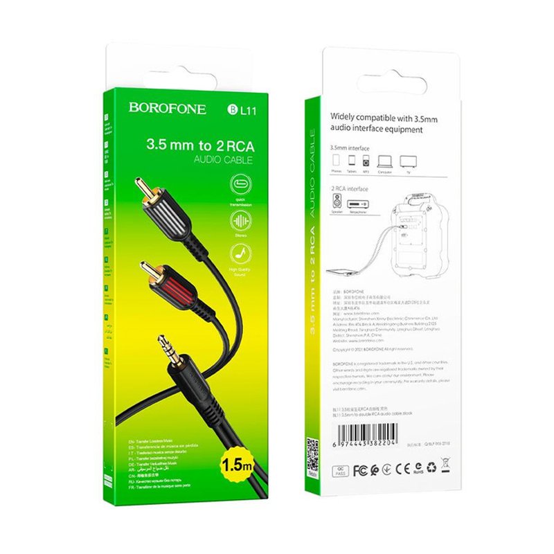Аудіокабель AUX BOROFONE BL11 mini Jack 3.5 mm — 2xRCA (чорний)