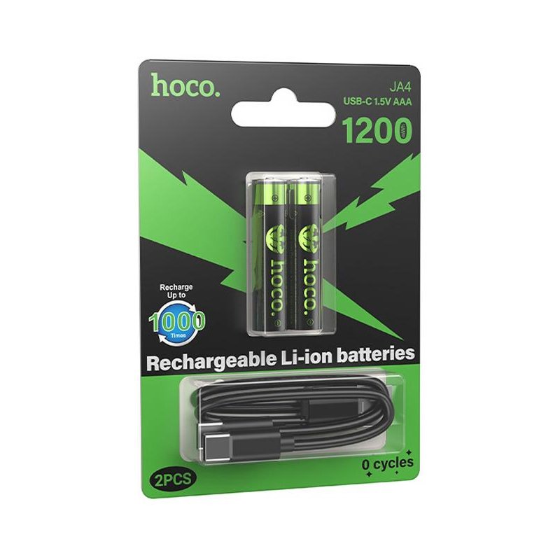 HOCO JA4 AAA 1200mWh — це набір літій-полімерних (Li-Po) акумуляторів формату AAA (мізинчикові), які кардинально відрізняються від звичайних акумуляторів. Їхня головна перевага — стабільна напруга 1.5V протягом усього циклу розряду та можливість зарядки через звичайний кабель USB-C без спеціального зарядного пристрою