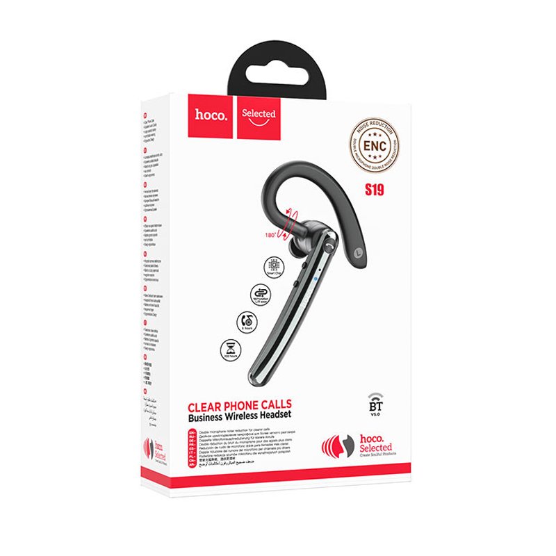 HOCO S19 — бездротова гарнітура, призначена для активного використання, зокрема під час занять спортом. Вона вирізняється легкістю та дизайном, що забезпечує надійну фіксацію