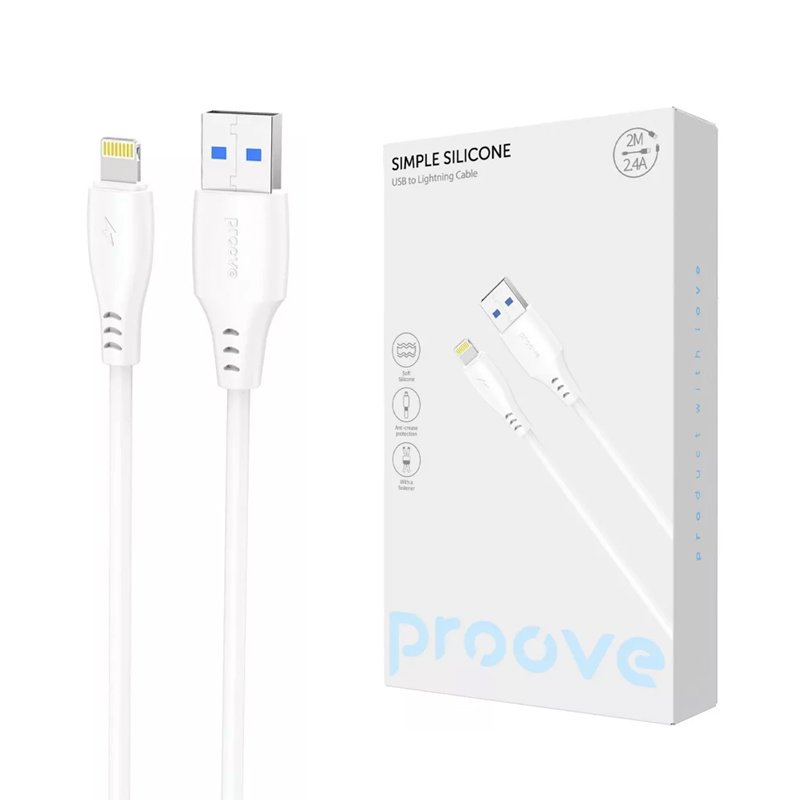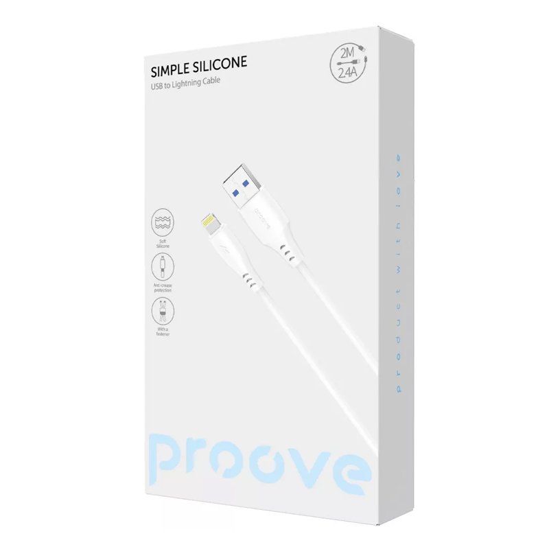 Кабель PROOVE SIMPLE SILICONE USB to Lightning 2.4A 2m (білий)