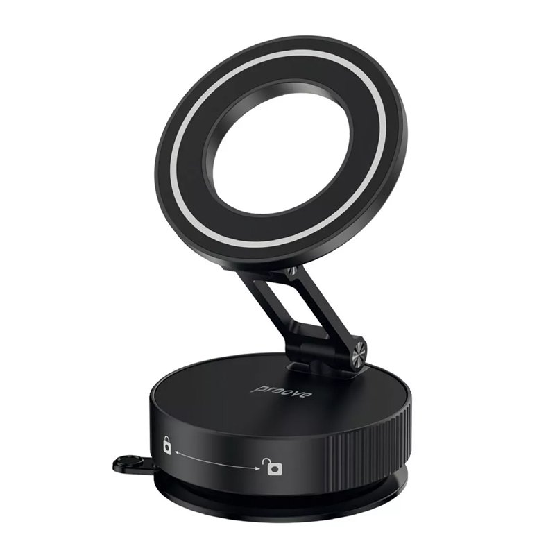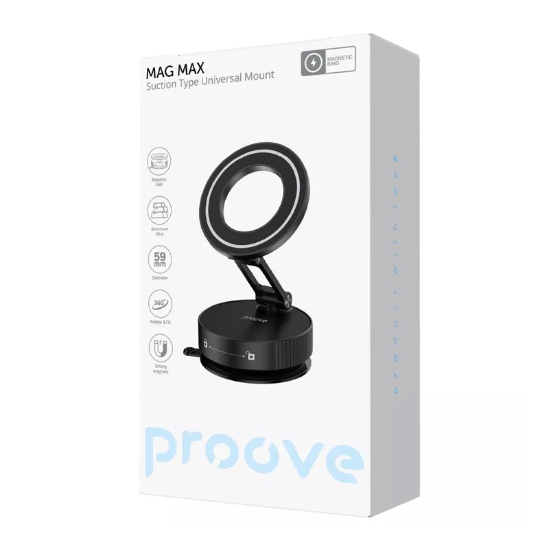 PROOVE MAG MAX — преміальний універсальний тримач, спеціально розроблений для повної сумісності з технологією MagSafe, який фіксується до будь якої рівної твердої поверхні не тільки в автомобілі