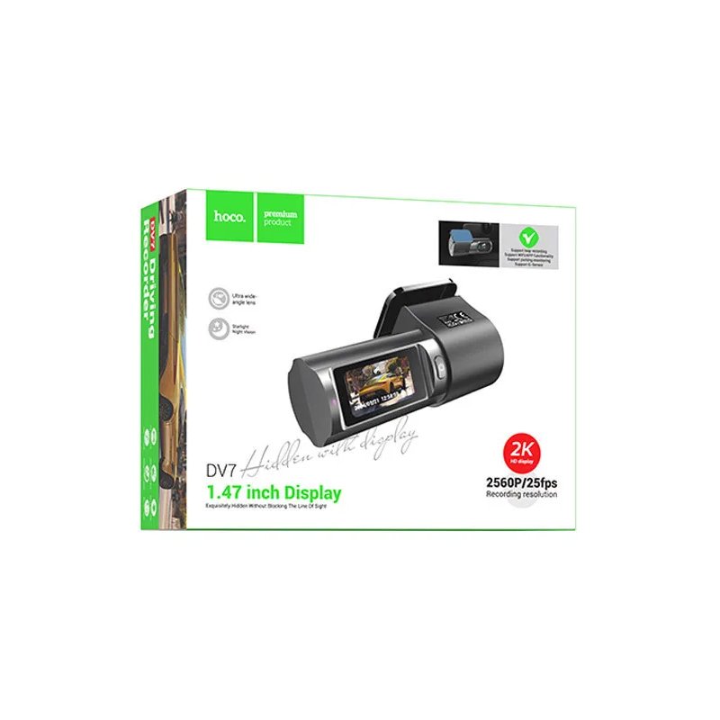 HOCO DV7 2K – автомобільний реєстратор із підтримкою запису відео у роздільній здатності 2K, широким кутом огляду та додатковими функціями для підвищеної безпеки на дорозі