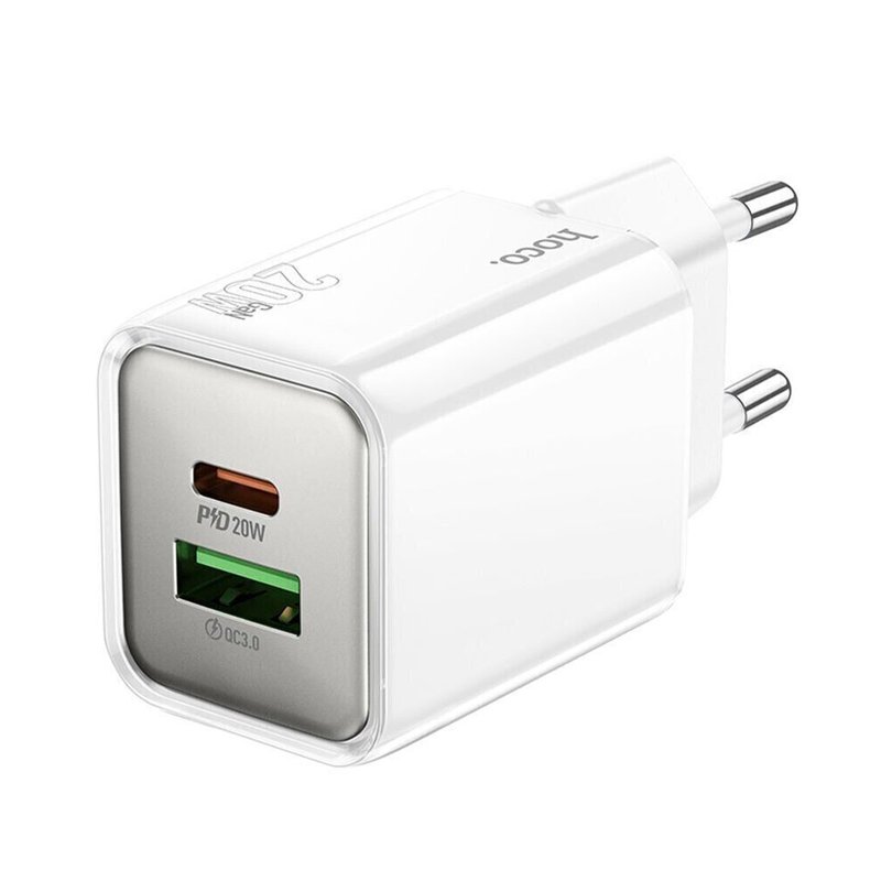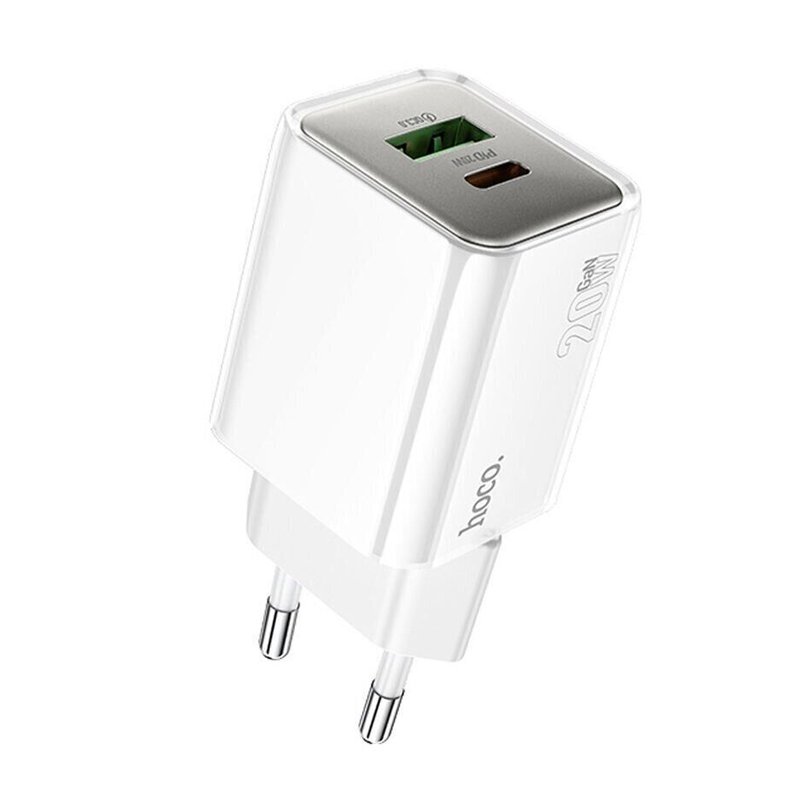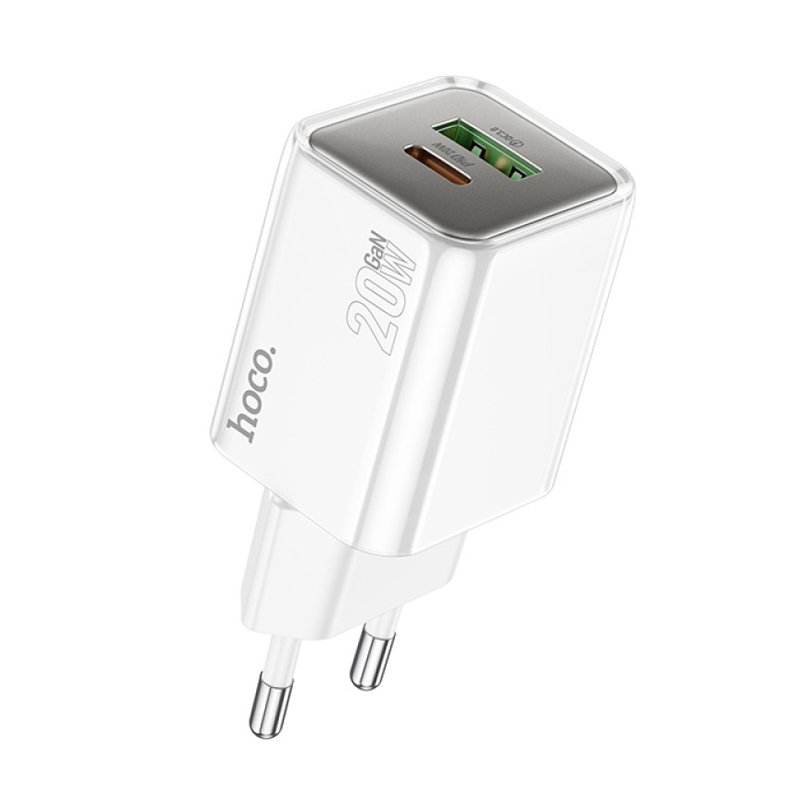 Мережевий зарядний пристрій HOCO N46 PD20W + QC3.0 GaN (білий)