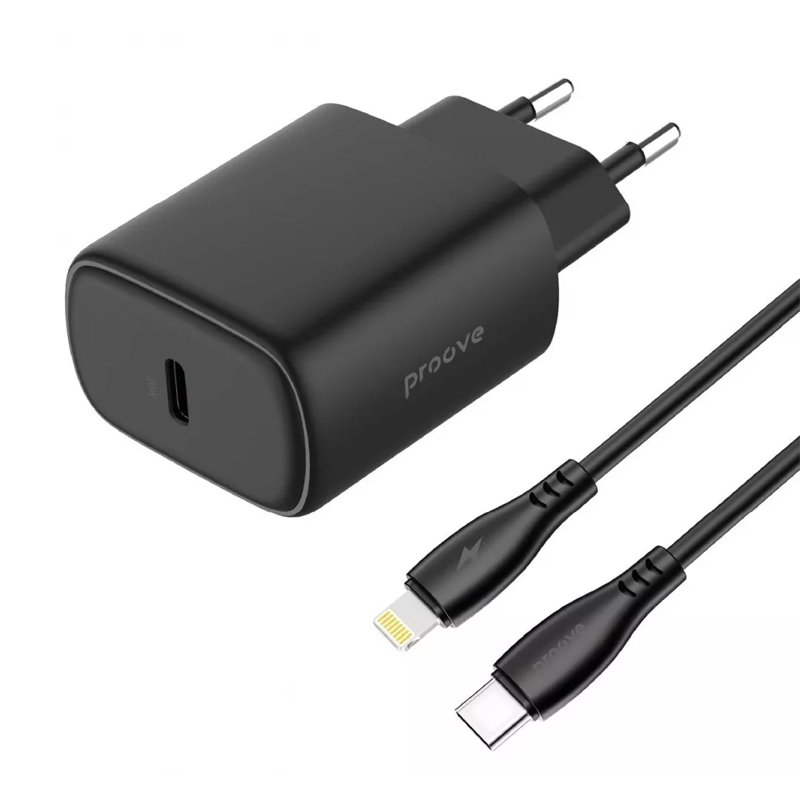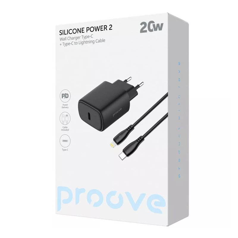 Мережевий зарядний пристрій PROOVE SILICONE POWER 2 20W + кабель Type-C to Lightning (чорний)