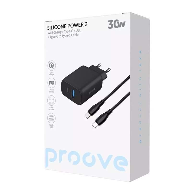 Мережевий зарядний пристрій PROOVE SILICONE POWER 2 30W + кабель Type-C to Type-C (чорний)