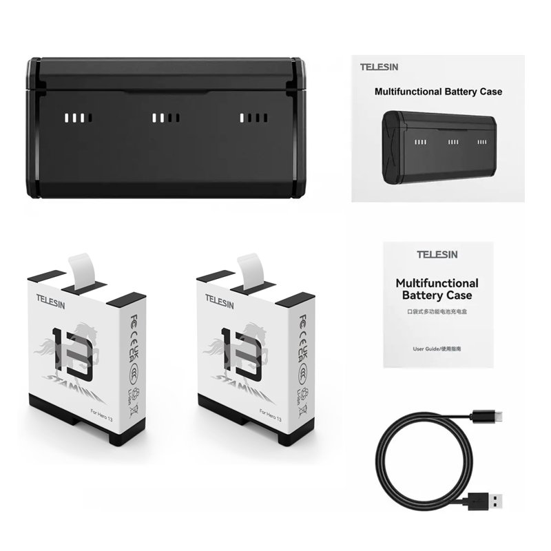 Зарядний пристрій TELESIN S0-EСB-09-TGP + 2 акумулятори GoPro 13 (чорний)