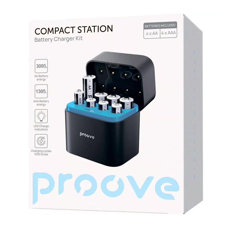 Зарядний пристрій з акумуляторними батарейками PROOVE COMPACT STATION 8pcs (4xAAA + 4xAA)