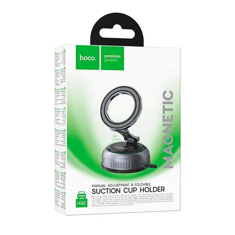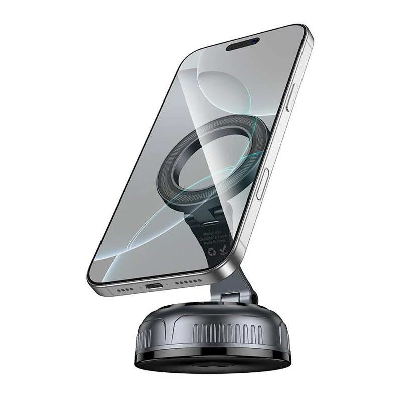 HOCO H92 — інноваційний тримач, що поєднує в собі потужність магнітів та ефективність вакуумної фіксації. Він гарантує стабільне положення вашого гаджета на будь-якій рівній площині, будь то приладова панель авто чи дзеркало у спортзалі