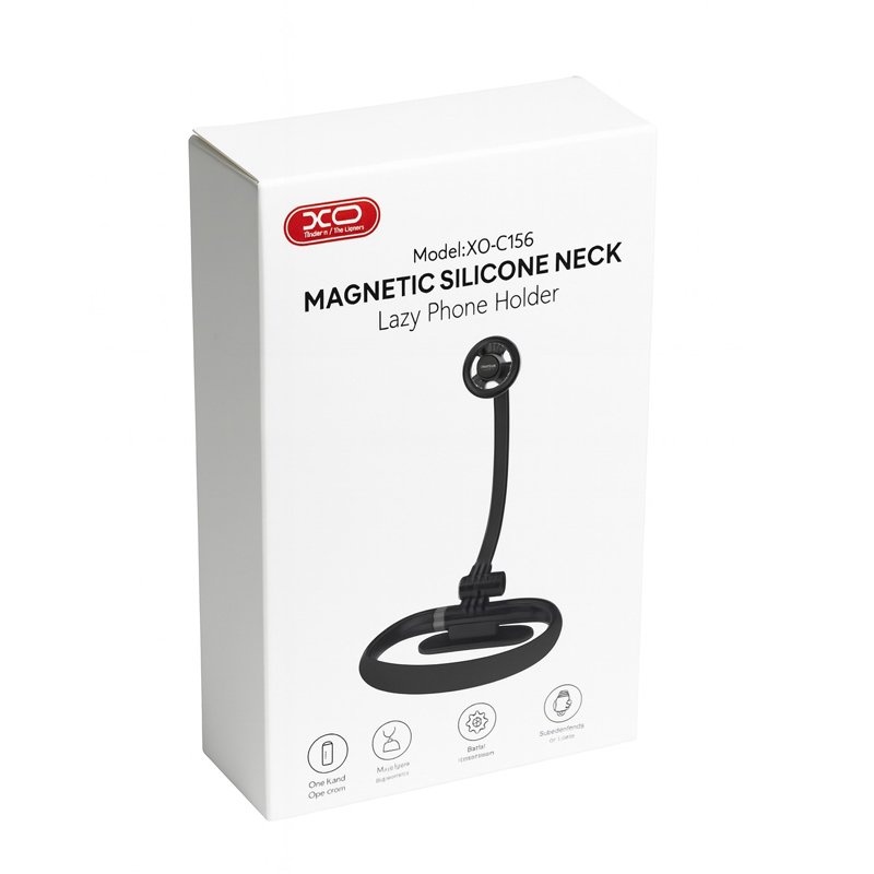 XO-C156 — магнітний тримач-“neck” для телефону, який звільняє руки: м’яке силіконове кільце зручно лягає на шию, а гнучка ніжка і магнітна платформа надійно фіксують смартфон для перегляду відео, відеодзвінків або зйомок