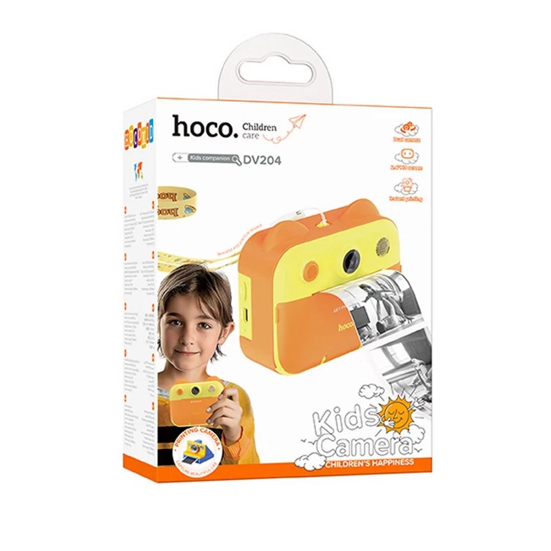 HOCO DV204 – дитяча фотокамера з функцією миттєвого друку фото, вбудованим екраном, записом відео та веселими ефектами для творчого використання дітьми