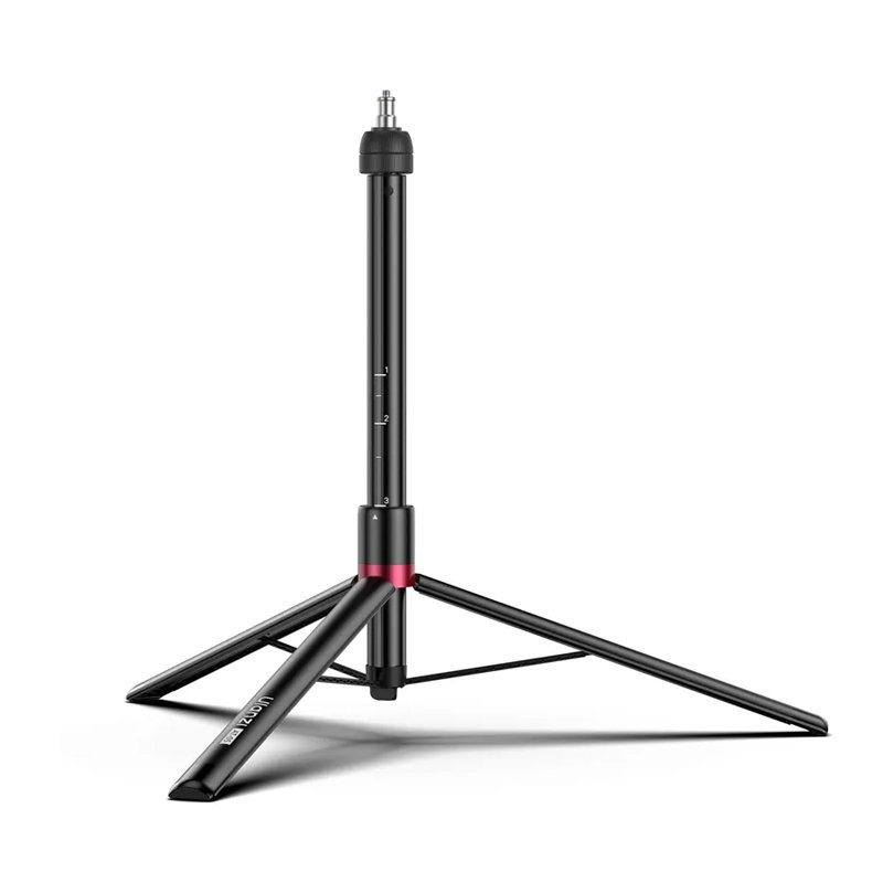 ULANZI AT-05 — професійна телескопічна стійка для освітлення заввишки до 2 м, виготовлена з міцного алюмінієвого сплаву, що забезпечує надійність та легкість конструкції. Вона підтримує навантаження до 5 кг, що робить її ідеальним вибором для використання з важкими джерелами світла, такими як софтбокси чи LED‑панелі.