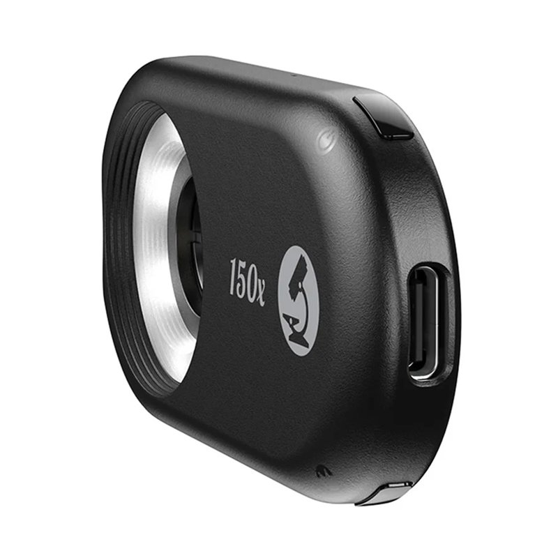 Apexel APL‑MS150 — портативний мікроскоп для смартфона з потужним 150× оптичним збільшенням, 12 LED-білих, 6 UV-діодами (395 нм) та CPL-фільтром для чітких макрознімків із універсальною кліпсою та фокусом одного руху — ідеальний для досліджень, навчання чи хобі