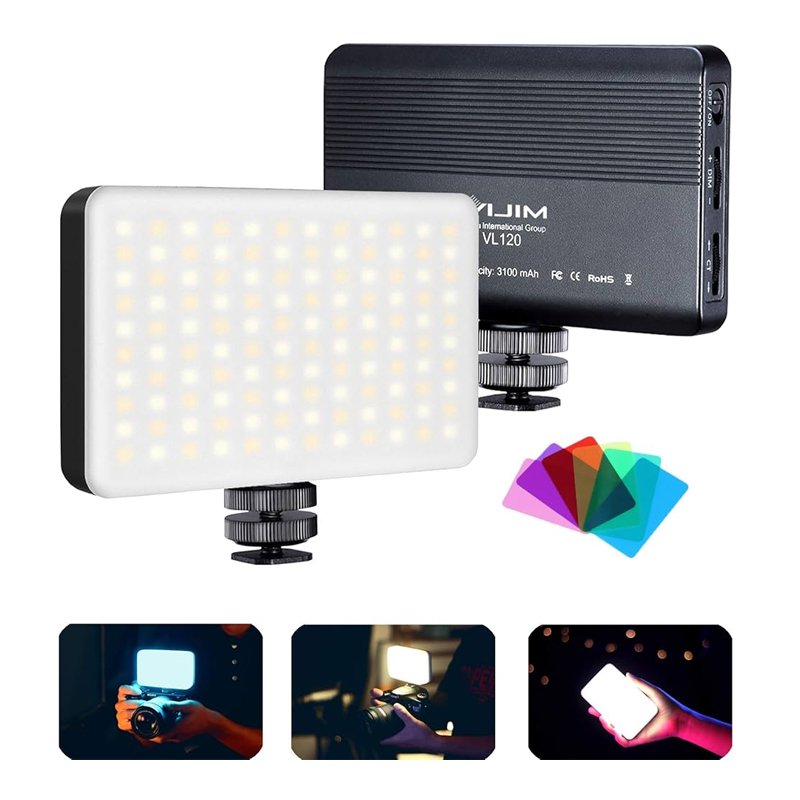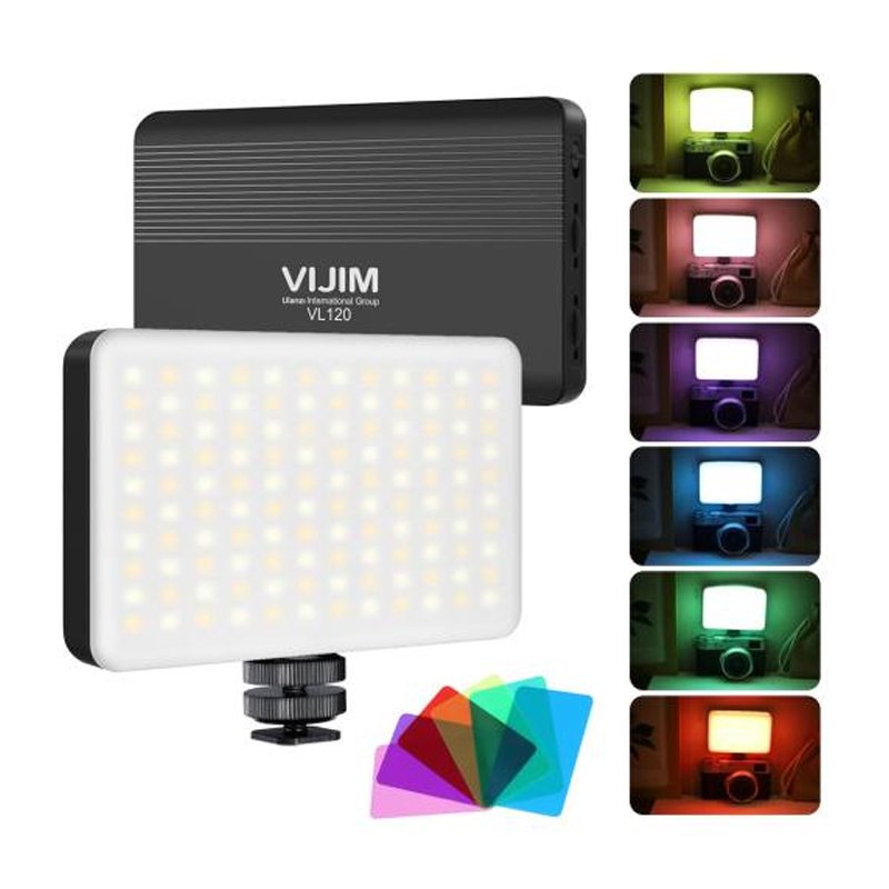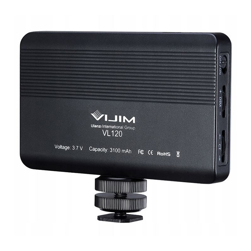 ULANZI VIJIM VL120 BI-COLOR — компактне світлодіодне освітлення з регульованою температурою кольору (від теплого до холодного світла), призначене для відеозйомки та фотографії, з вбудованим акумулятором і кріпленням для зручної установки на камеру, або на штатив