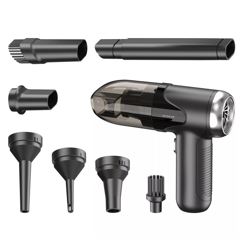 PROOVE VOID ASSISTANT V1 — компактний бездротовий пилосос, розроблений спеціально для швидкого прибирання салону автомобіля або робочого місця. Завдяки силі всмоктування 5000 Pa та ергономічному дизайну, він легко видаляє пил, пісок, крихти та дрібне сміття навіть у важкодоступних місцях