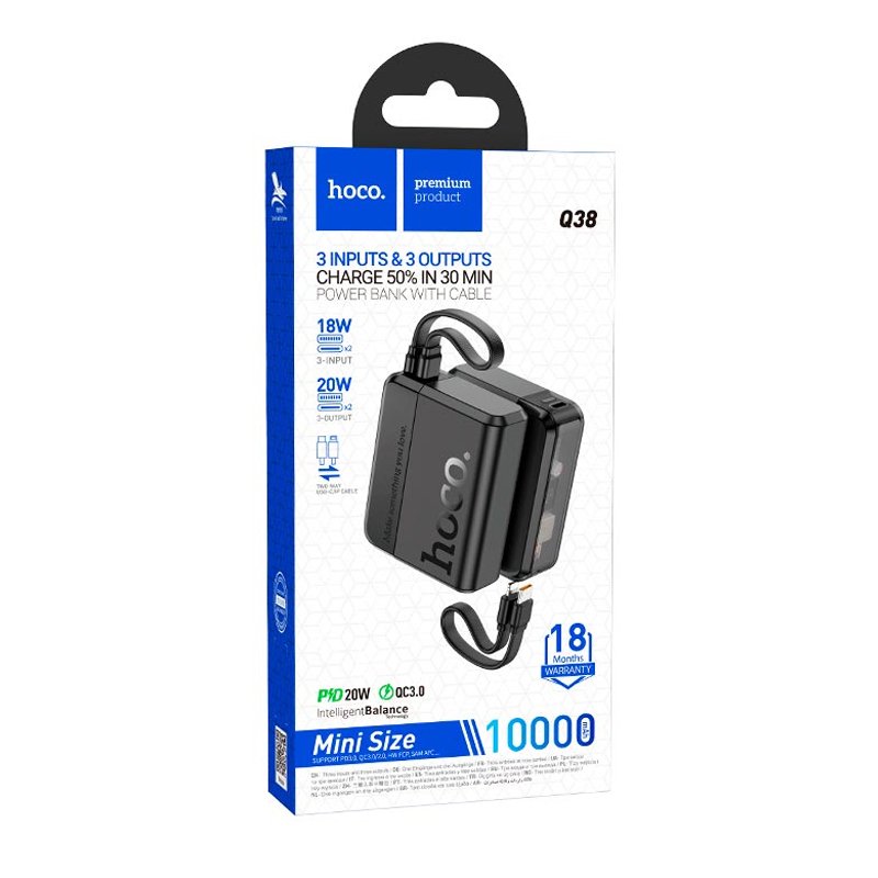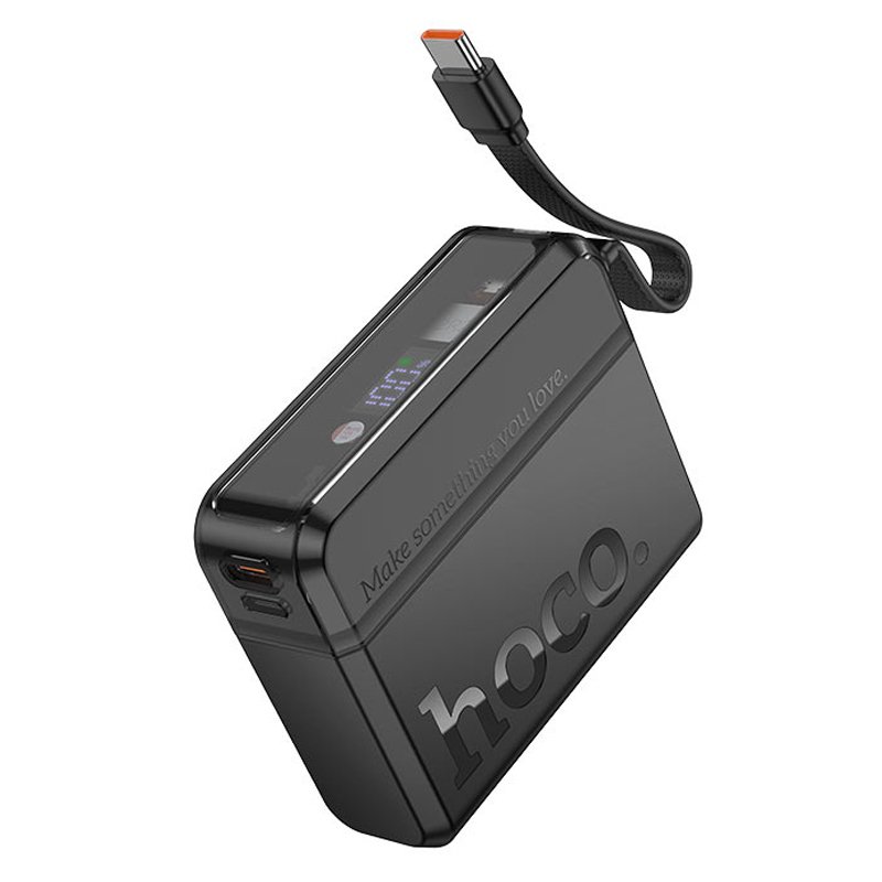HOCO Q38 EXCELLENT PD20W — суперкомпактний павербанк ємністю 10000 мА/г із цифровим LED-дисплеєм та унікальним дизайном, що включає знімний двосторонній кабель Type-C to Lightning, який також виконує роль зручного ремінця для перенесення