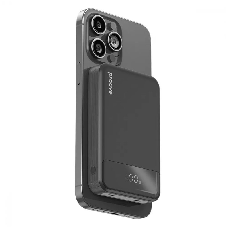 PROOVE HOODMAN MAGNETIC 10000 mAh — компактний павербанк з ємністю 10000 мА·год, підтримкою PD 20 Вт і магнітною MagSafe-фіксацією для зручної бездротової зарядки смартфонів. Оснащений USB-C та бездротовим модулем, дозволяє швидко заряджати пристрої без кабелів і ідеально підходить для щоденного використання в дорозі