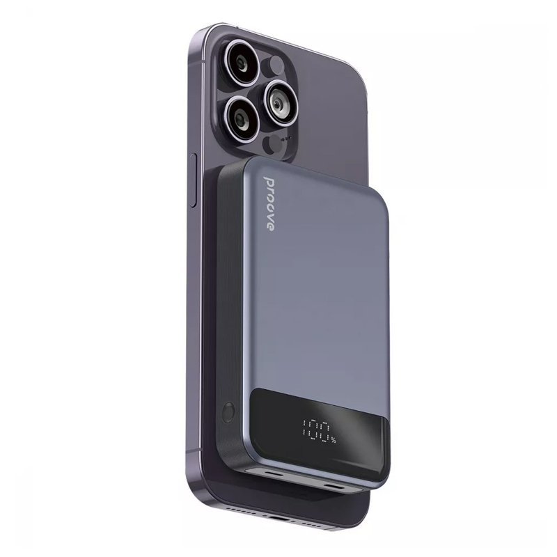 PROOVE HOODMAN MAGNETIC 10000 mAh — компактний павербанк з ємністю 10000 мА·год, підтримкою PD 20 Вт і магнітною MagSafe-фіксацією для зручної бездротової зарядки смартфонів. Оснащений USB-C та бездротовим модулем, дозволяє швидко заряджати пристрої без кабелів і ідеально підходить для щоденного використання в дорозі