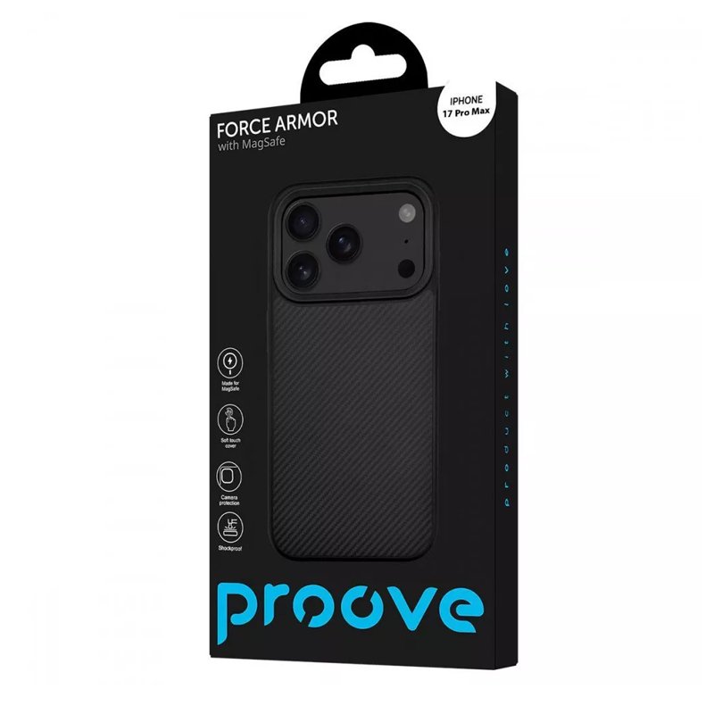 PROOVE FORCE ARMOR CASE — преміальний захисний чохол, що поєднує в собі брутальний “броньований” дизайн та повну сумісність з екосистемою аксесуарів MagSafe. Він створений для тих, хто шукає максимальний рівень безпеки для свого смартфона без компромісів у функціональності