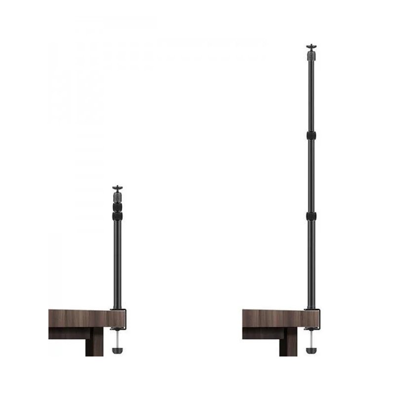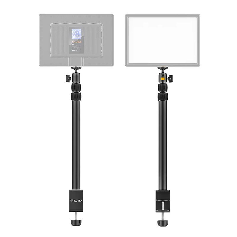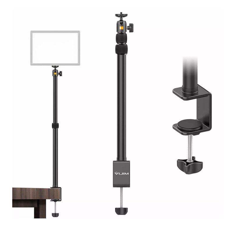 ULANZI VIJIM LS01 — настільний телескопічний тримач-штатив із кріпленням струбциною, універсальним гвинтом 1/4″, що дозволяє монтувати камери, кільцеві лампи або панелі світла. Регульована висота від 37 до 102 см, алюмінієвий корпус, вантажопідйомність до 3 кг, ідеальний для стрімів, контенту та відеовлогів