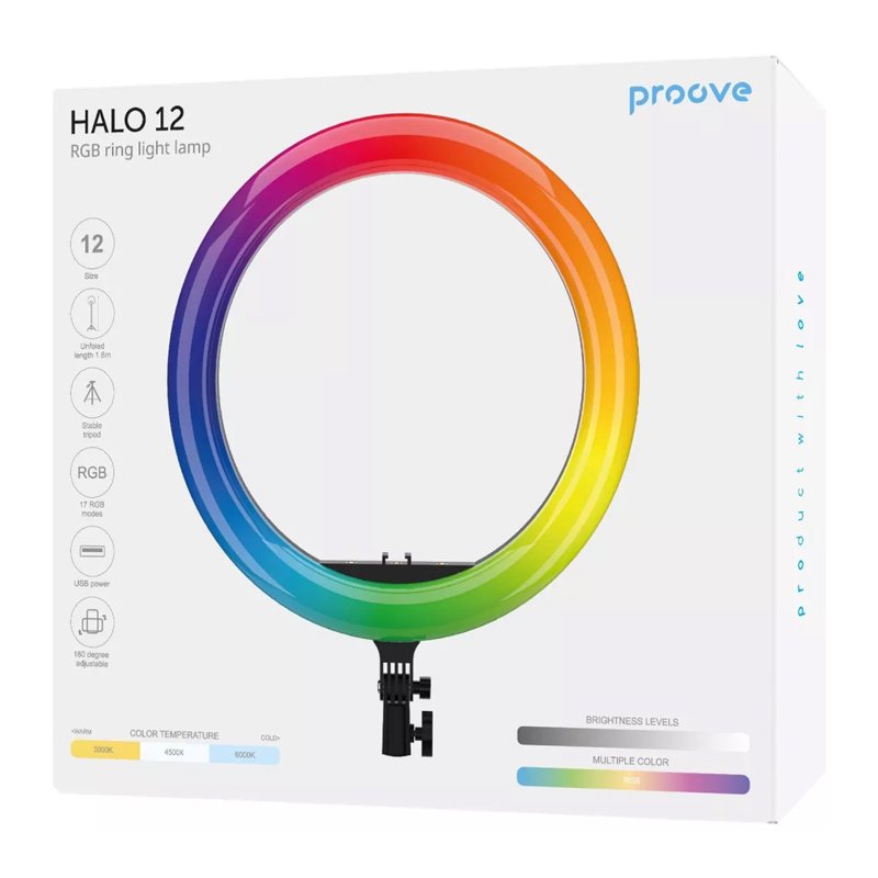 PROOVE HALO 12 — стильне RGB-кільце 12 дюймів, оснащене 168 LED-діодами, регульованою кольоровою температурою від 3000K до 6000K та RGB-підсвіткою. Працює через USB (5V/2.4A), має вбудований трипод з висотою до 1,6 м і виготовлене з ABS + PC + алюмінієвого сплаву для довговічності та легкості. Ідеальний варіант для фото, відео, стрімів або передавання настрою в кадрі