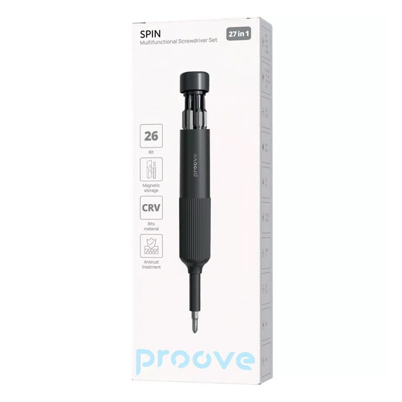 PROOVE SPIN 27-in-1 — універсальний набір прецизійних викруток, розроблений для точних робіт з електронікою, смартфонами, ноутбуками та побутовою технікою. Його головна особливість — продумана ергономіка та зручний кейс, що робить процес ремонту максимально комфортним