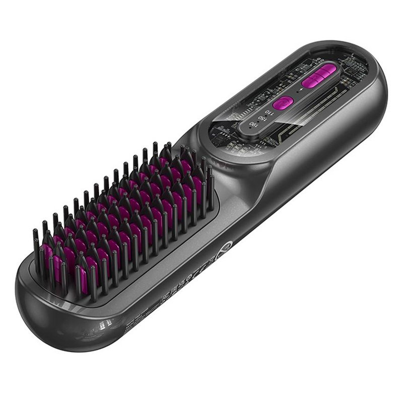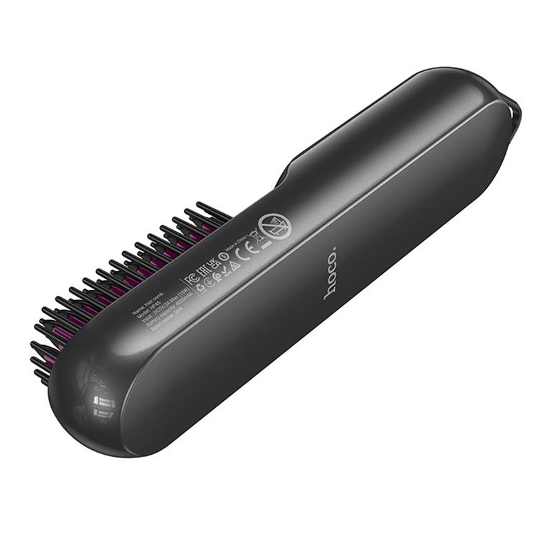HOCO HP45 — гребінець-випрямляч з акумулятором 4000 мА·год: міні-пристрій (210×48×47 мм, вага 274 г) оснащений трирівневою регуляцією температури (110–190 °C) та автономною роботою до 30 хвилин — швидко випрямляє волосся, де б ви не були, без нагріву праски
