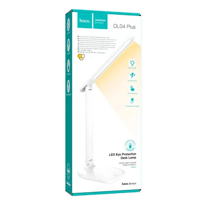 HOCO DL04 PLUS — вдосконалена версія популярної настільної лампи, яка поєднує в собі мінімалістичний дизайн, високу енергоефективність та турботу про зір. Завдяки вбудованому акумулятору, вона стає незамінним помічником під час відключень світла або для роботи в місцях, де немає доступу до розетки