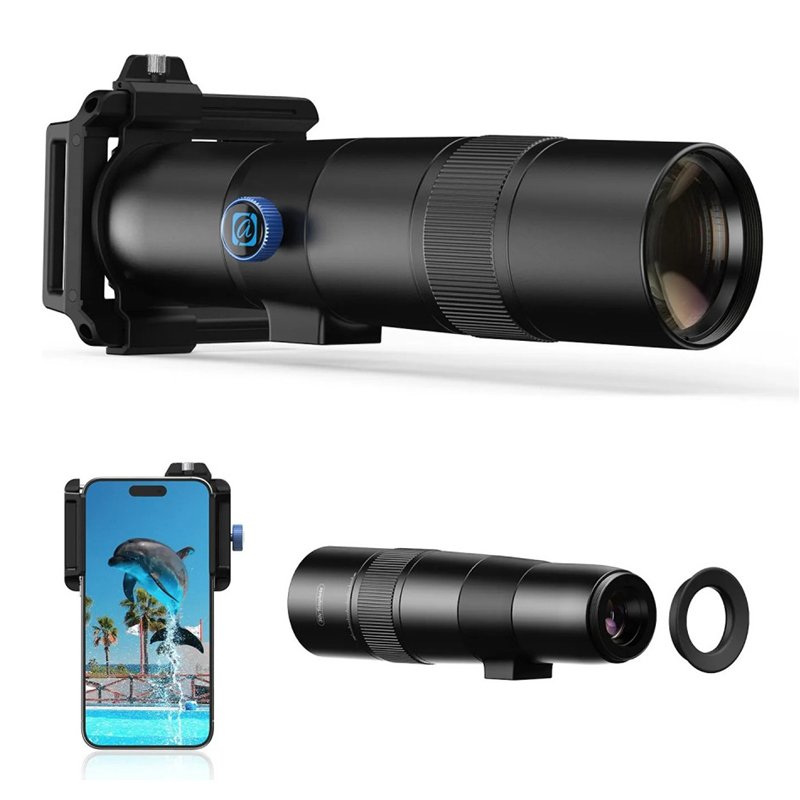 Apexel APL‑T30XJJ028 — потужний телеоб’єктив для смартфона з 30-кратним оптичним zoom (еквівалент 720 мм), 10‑елементною оптикою з 99,5 % прозорістю і низьким викривленням ≤2,8 %. Комплект включає компактний штатив, 46 мм різьблення для фільтрів і універсальне кріплення — ідеальний вибір для дикой природи, спорту і подорожей