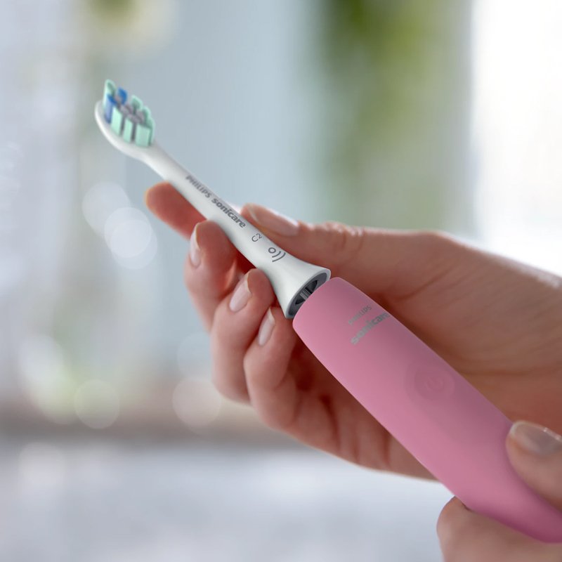 Зубна щітка PHILIPS SONICARE 4100 HX3681 забезпечує ефективне очищення зубів за допомогою звукової технології, має таймер, датчик тиску для збереження здоров’я ясен та 2 швидкісних режими