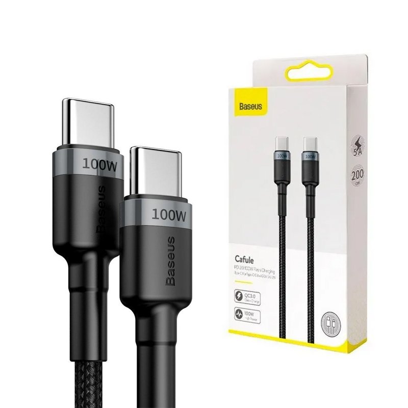 USB кабель BASEUS CATKLF-ALG1 Cafule PD2.0 Type-С to Type-С 2m 100W 5A (чорний)