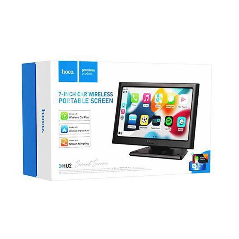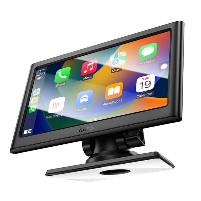 HOCO HU2 – автомобільний бездротовий мультимедійний дисплей з 7-дюймовим екраном, підтримкою Android та iOS, з кріпленням на панель автомобіля
