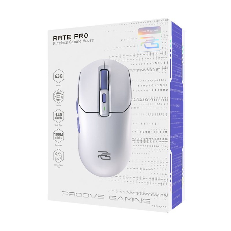 PROOVE GAMING RATE PRO — високотехнологічна бездротова ігрова миша, розроблена для геймерів, які вимагають максимальної швидкості та налаштувань. Вона є частиною преміальної лінійки Proove, що пропонує передові технології