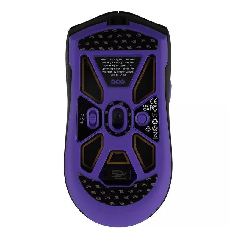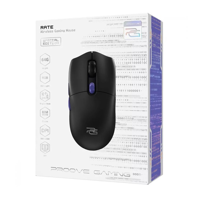 PROOVE GAMING RATE SPECIAL EDITION — бездротова ігрова миша з чутливістю від 800 до 26000 dpi, яка має 6 кнопок та вбудований акумулятор ємністю 650 мА/г, що дозволяє неперервно використовувати мишу в бездротовому режимі протягом 46 годин