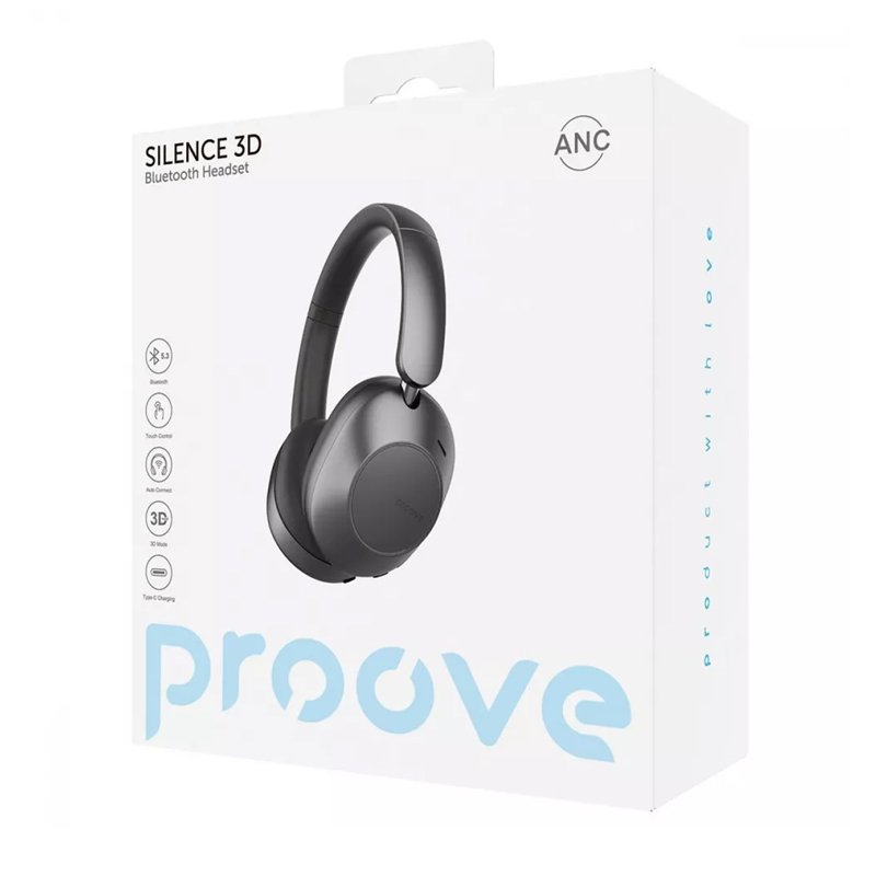 PROOVE SILENCE 3D — повнорозмірні Bluetooth-навушники (Over-Ear), які поєднують у собі сучасні технології обробки звуку та систему активного шумозаглушення. Модель орієнтована на користувачів, які цінують занурення в контент та комфорт при тривалому використанн