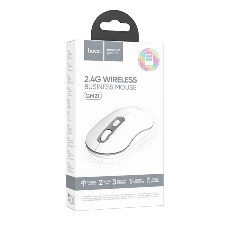 HOCO GM21 — класична бездротова оптична миша, яка ідеально підходить для щоденної роботи з ноутбуком або ПК. Вона вирізняється стриманим дизайном, хорошою ергономікою та тривалим терміном служби кнопок